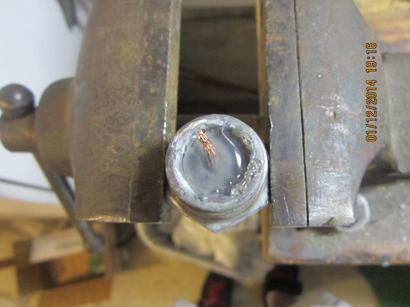 So now I have to take apart the spark plug and do something with it; I can't even tell what exactly is wrong. All I know is that it's gonna be a pain to redo since there's probably 15 mL of JB Weld holding the wire in place. Maybe I just need to use something else for the electrode, like a bent screw or a paperclip?