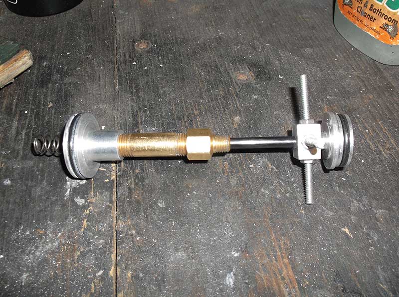 Could you put a tiny check valve in the bleed hole of the left piston? Like a grease zirk with the spring removed or something like that.