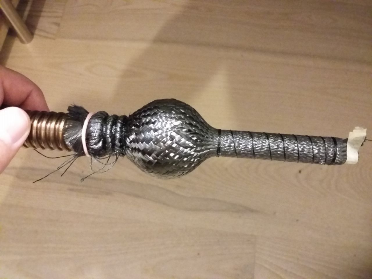 Oh, and I did my first carbon fiber thingy today, probably need 2 or 3 layers of sleeve before it's good. Pictures are before and after resin has been applied.