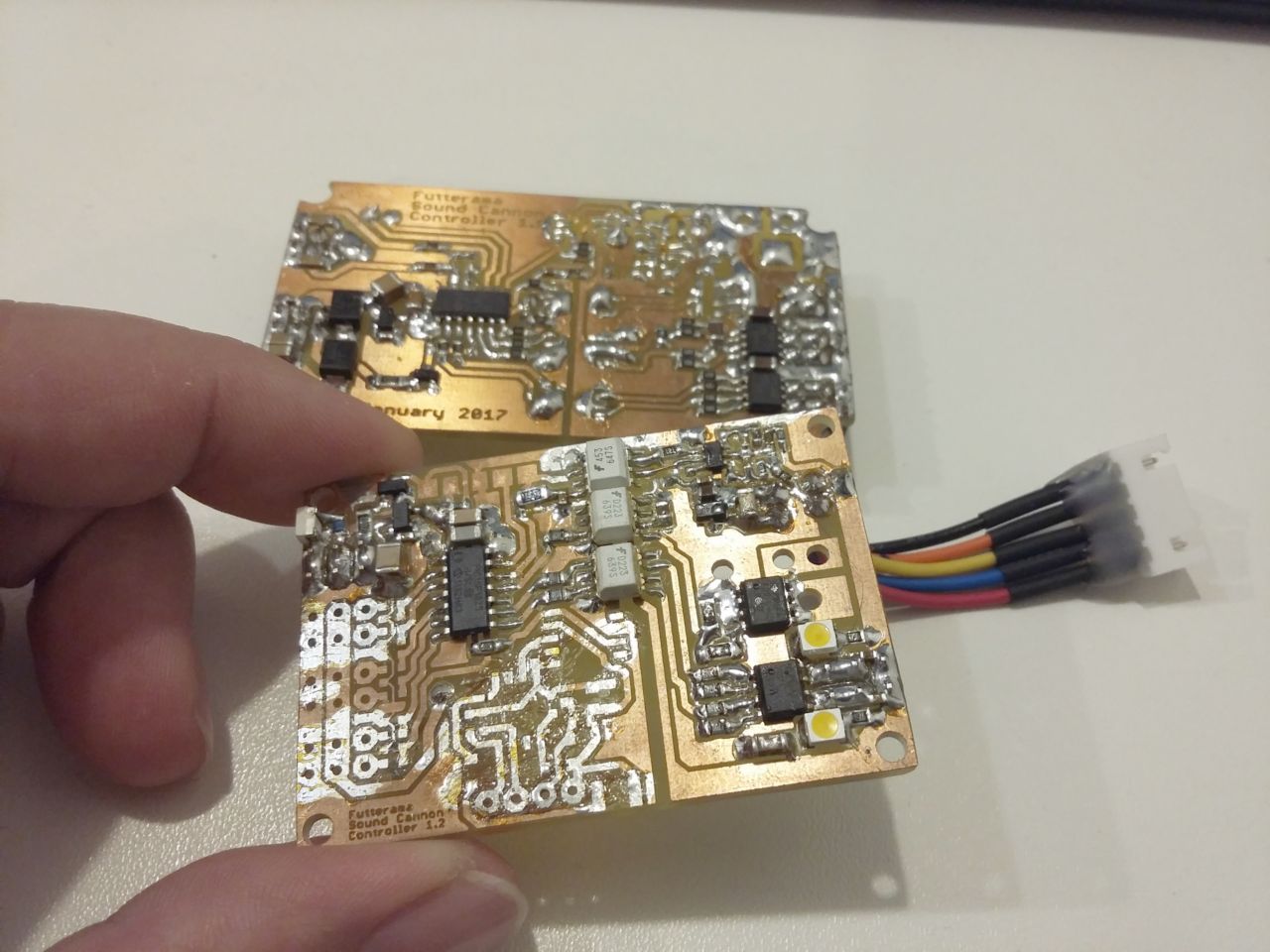 The picture is of my latest version of the controller for controlling 2 cannons. The one on the table is a bigger version for 6 cannons which is something I'm going to use on a bigger RC plane. I'm currently in the progress of revising the versions as I had made some mistakes in the design. This also takes a very long time to make because I want everything perfect