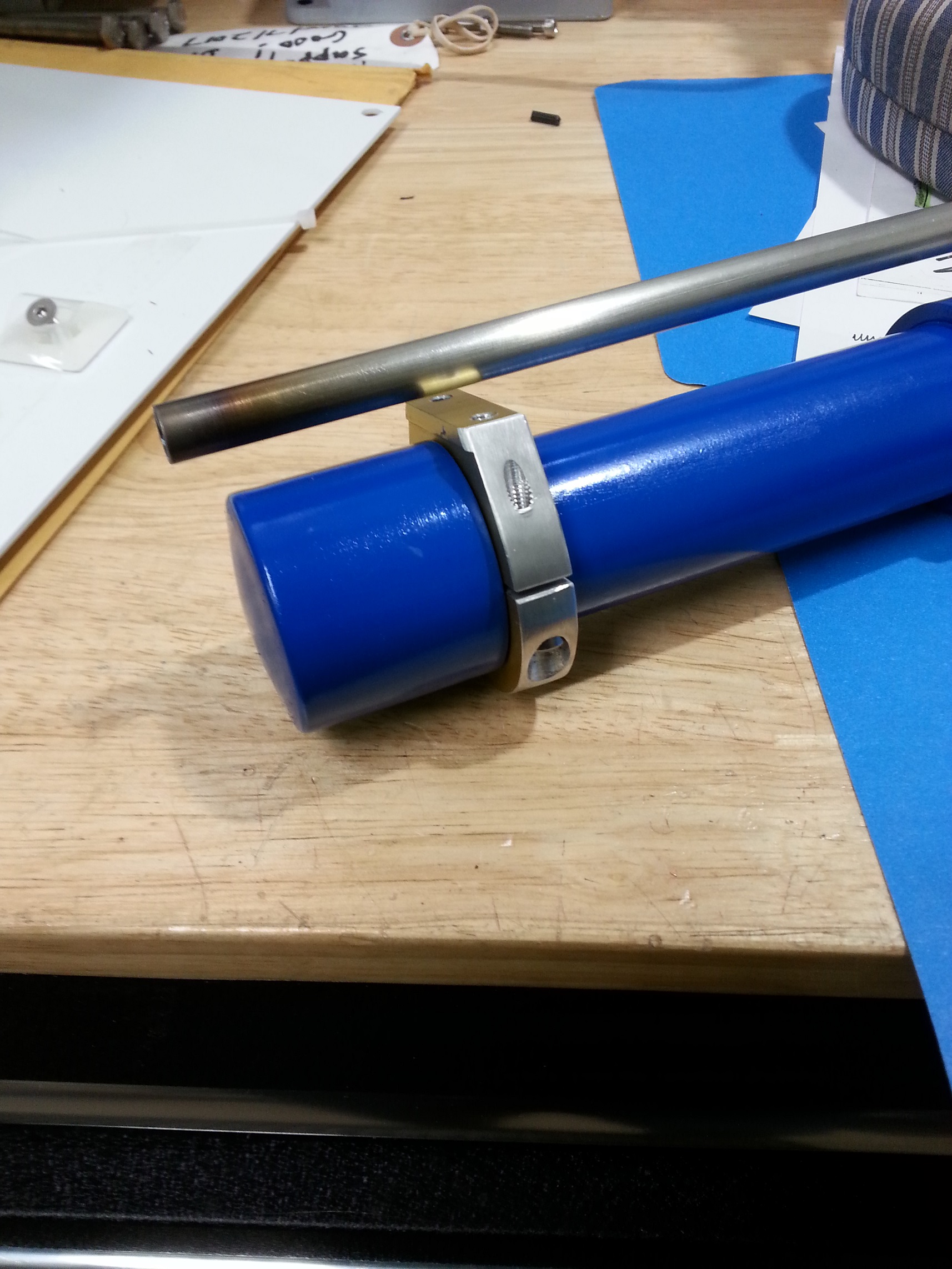 Started to make a clamp to join the chamber and barrel, the front sight will be on top of it