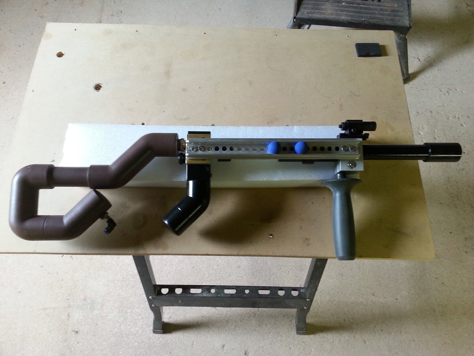 Working on the MKIII, stainless steel chamber and 3/4" copper barrel. loading through the side of a 3/4 ball valve.