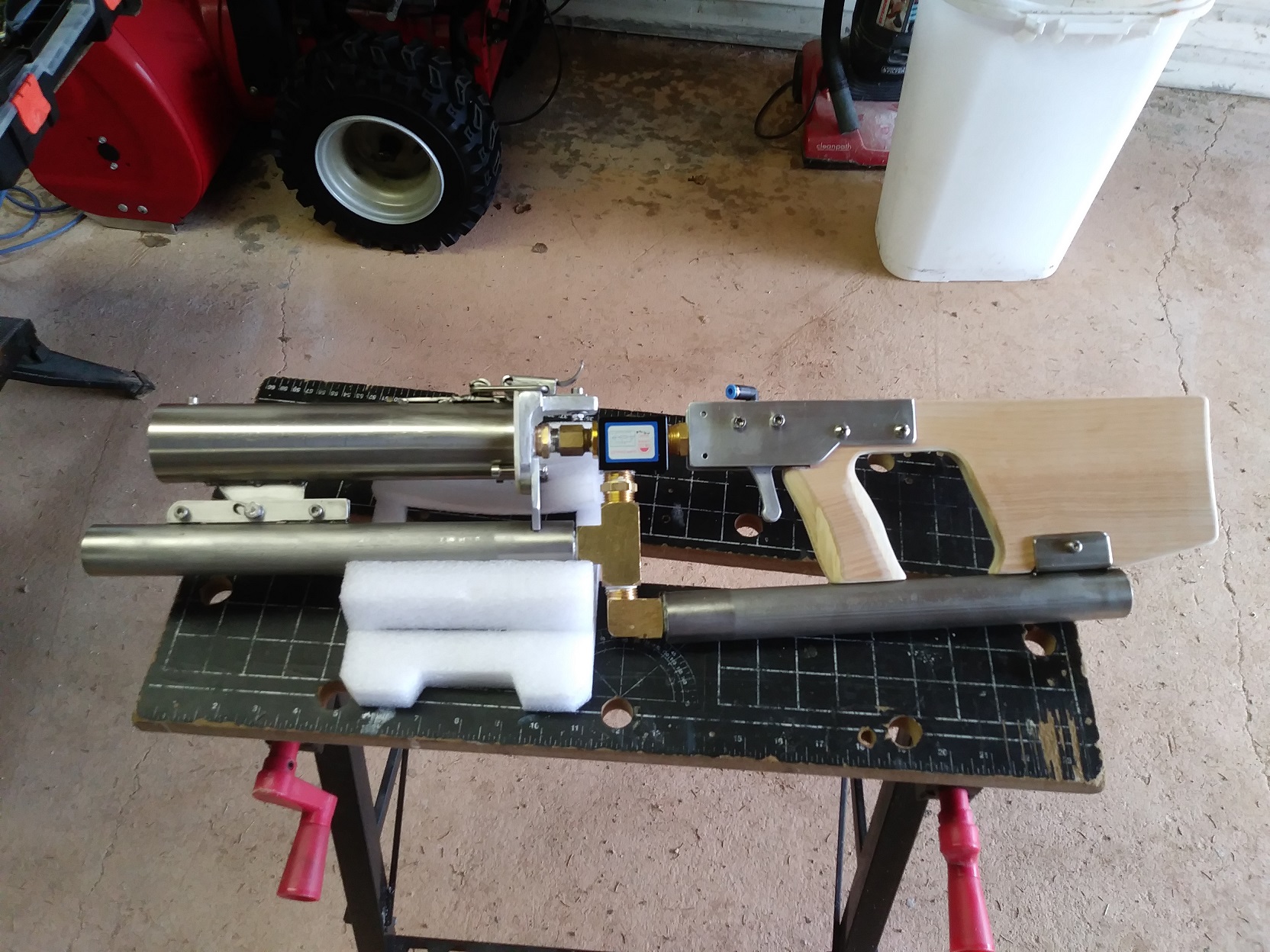 This is looking pretty nice. Looks like a fun little launcher. I really love the break barrel design and locking mechanism, plus it seals which is not always easy to do. Foam golf balls are a good idea as well if using around the house like you have shown. Good stuff. Looking forward to some slightly higher pressure testing perhaps...