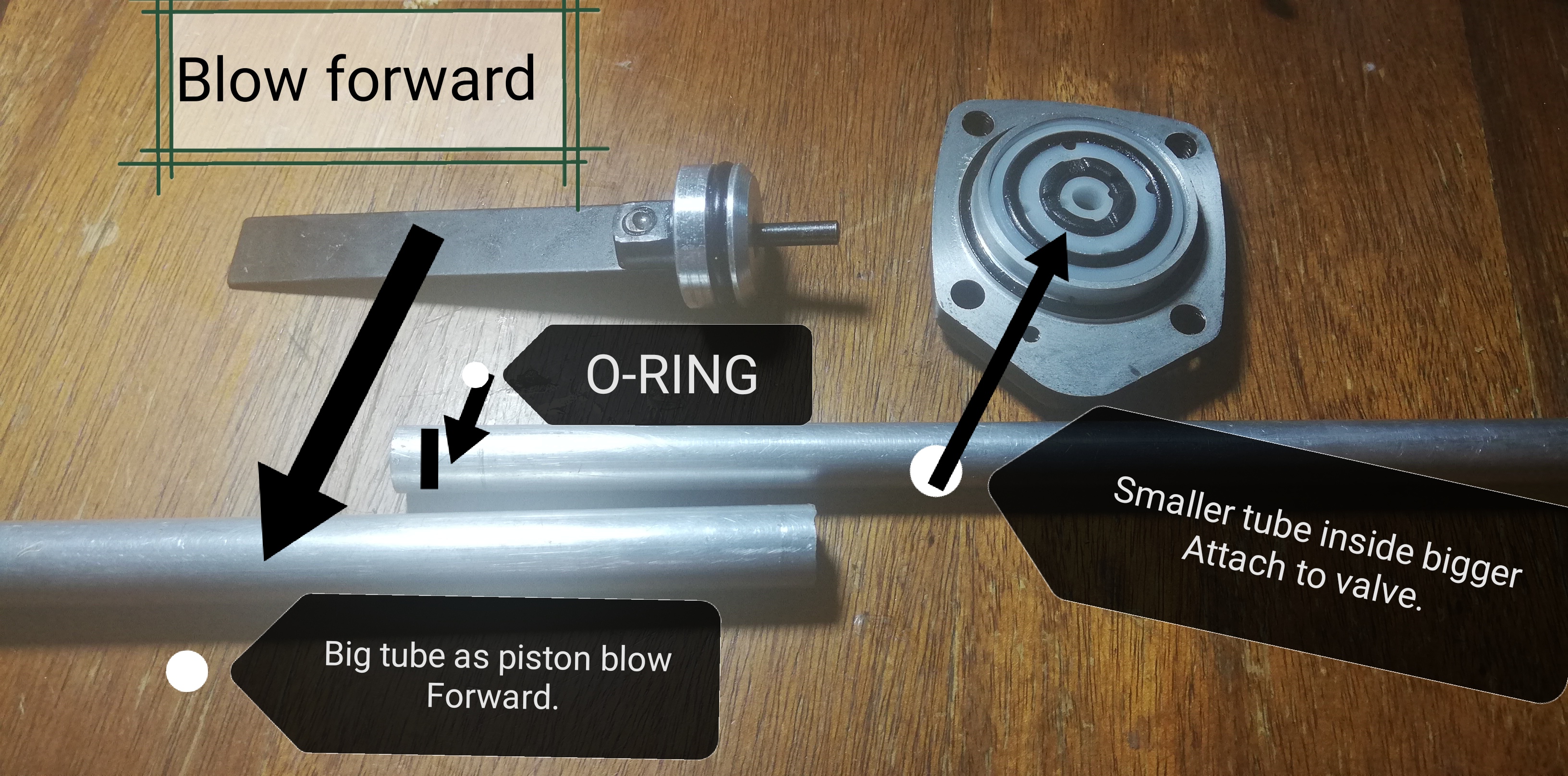 Seperate chamber around piston valve from handle. (handle and around valve seems volume expelled. Maybe different if had the staple piston. Any how.