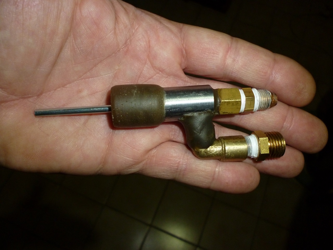 In "B", the "captive ball valve", when combustion occurs, the 6.35mm mole moves to the left and passes the flow through the transfer into the firing barrel. This green ball is the one that is thrown. The idea is to be able to make a very small restraint system to fire lead pellets or other ammunition. The two bb`s are the same. Different color is just for reference use. .