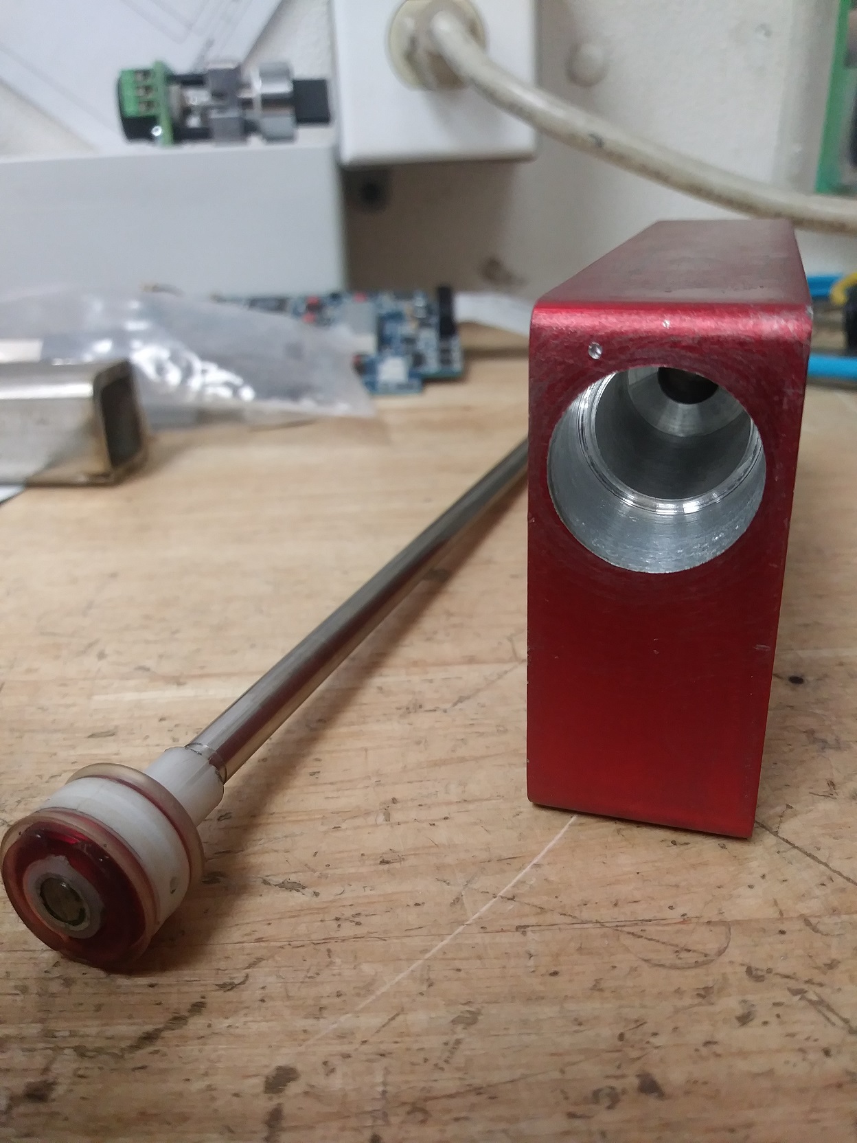 Progress so far, piston is from a pneumatic cylinder, the rod is 6mm so is perfect for an airsoft barrel.