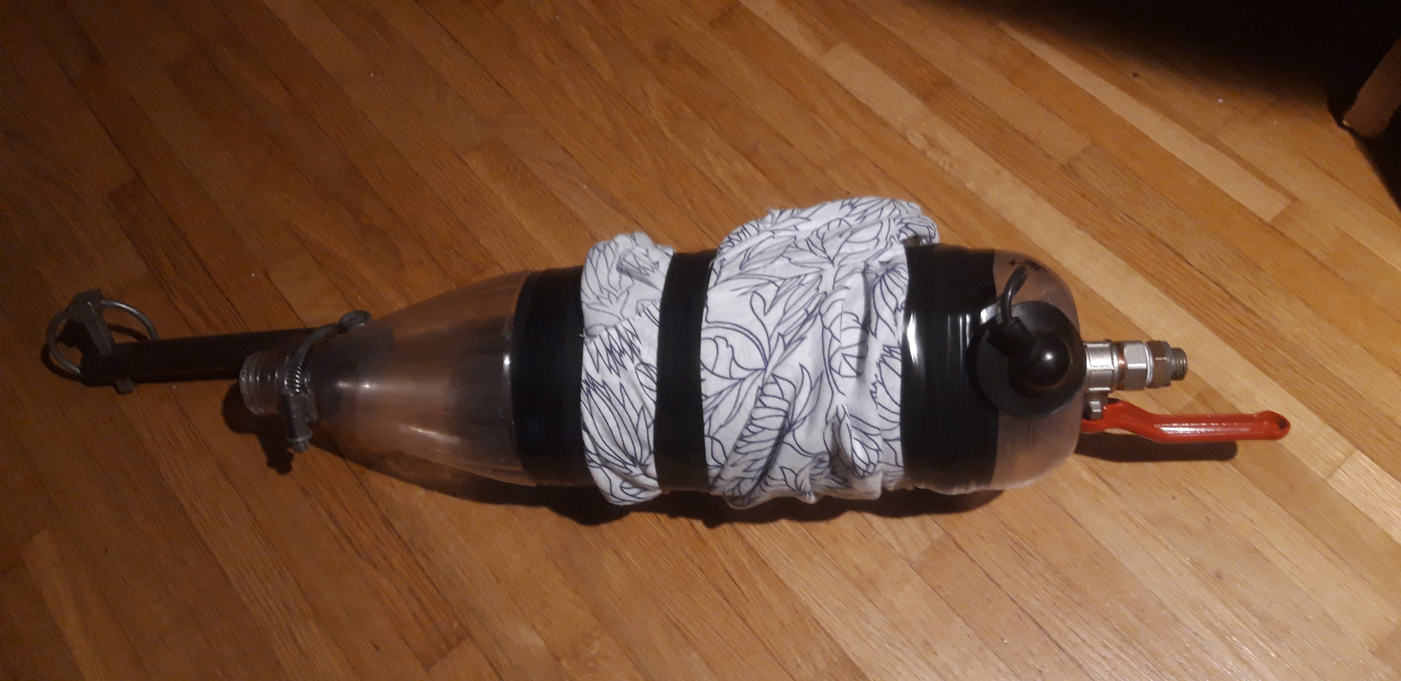 There will be more parts to the injector before I consider it done. The most important part is adding a 12V mattress inflator, also controlled by the Arduino, so that I can replace the air through the same port before injecting new fuel. I plan on using a larger hose for this, and placing the gas hose loosely inside the air hose, so they they both can be connected at once and the rest done by the push of a button.