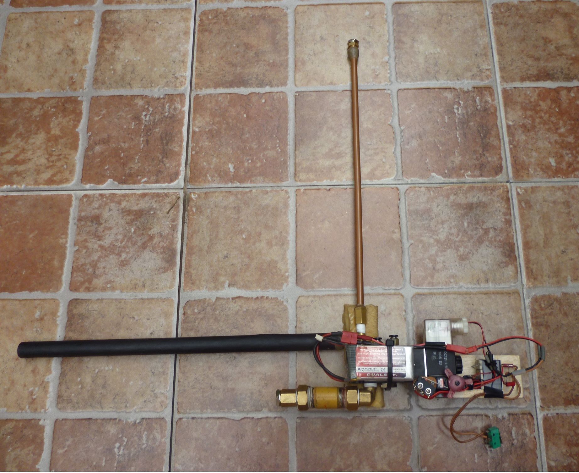 At 9 or 10 bars, it shoots roughly like a green gas marker, enough to play for a while. Maybe I made a nice fairing, machine gun type of the second war or if I replace the engine with a crank, something older, the kind that gives you a handle to shoot.