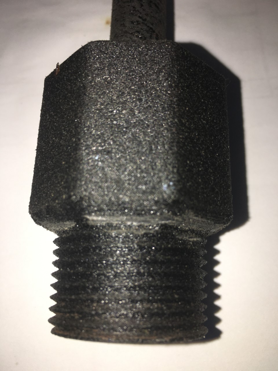 the part shown for example is 30% glass filled PA6 Nylon and the threads are accurate 1" NPT the smaller diameter was sanded smooth to aid in less friction glass fiber is rough textured like sand paper even at fine layer heights