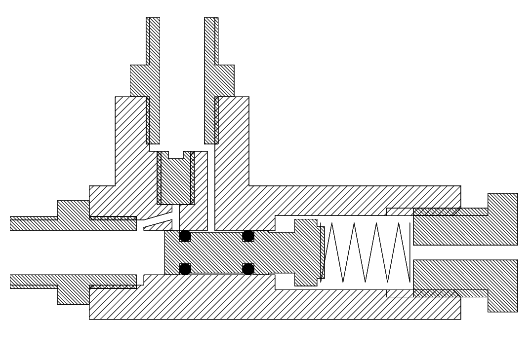 I incorporated a small additional spring as in the drawing, and I can regulate to less than 1 bar, without touching the main spring on the right. It works well, and it will not be necessary to redo the entire piston to be able to regulate the outlet at very low pressure