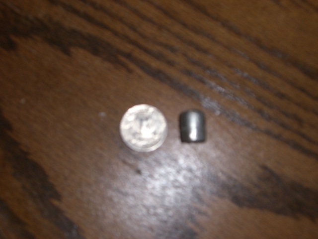 At 125 psi all of the darts I have made are destroyed on impact, so I fashioned a slug by melting soldier into a 3/4 inch long piece of 1/2 inch copper(lined with alum. foil). I then cut the copper away leaving a perfect slug. I had no clue how powerful pneumatics could be, so I thought I could get away with letting it off in the house (VERY DUMB).
