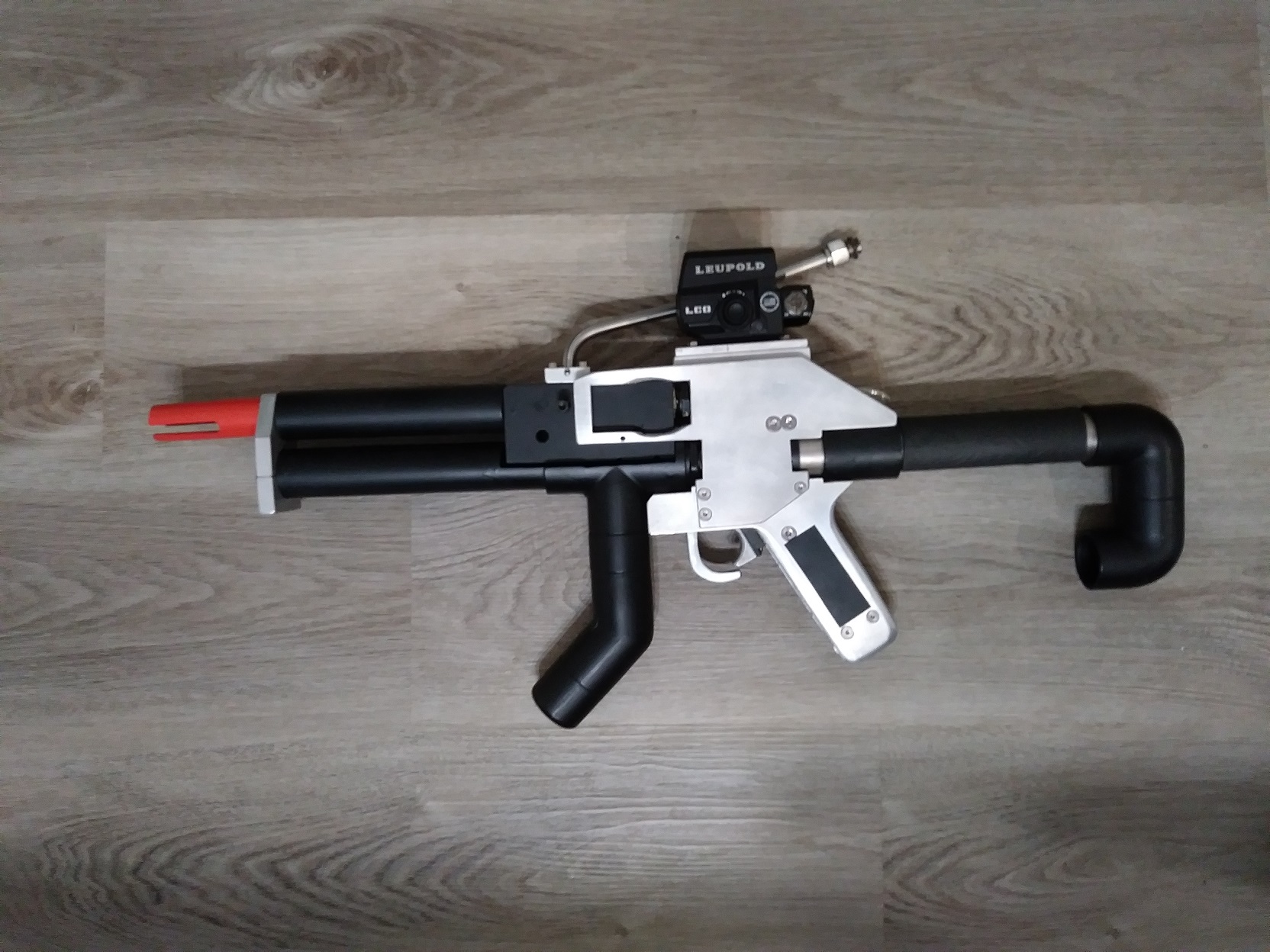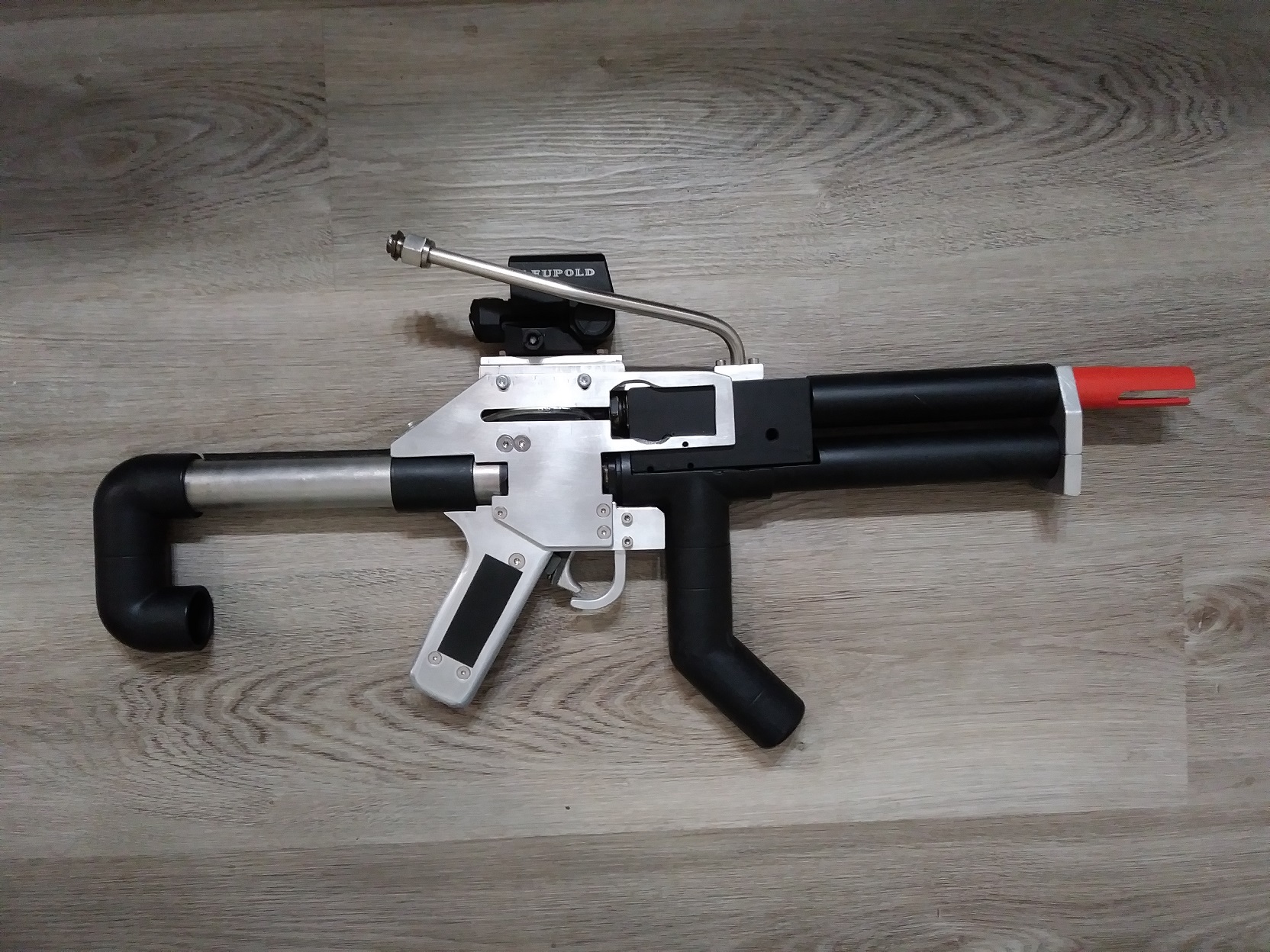 This turned into a semiauto by making a simple spring loaded piston, I'll find some pictures. If I was going to build another semiauto I would do this again.