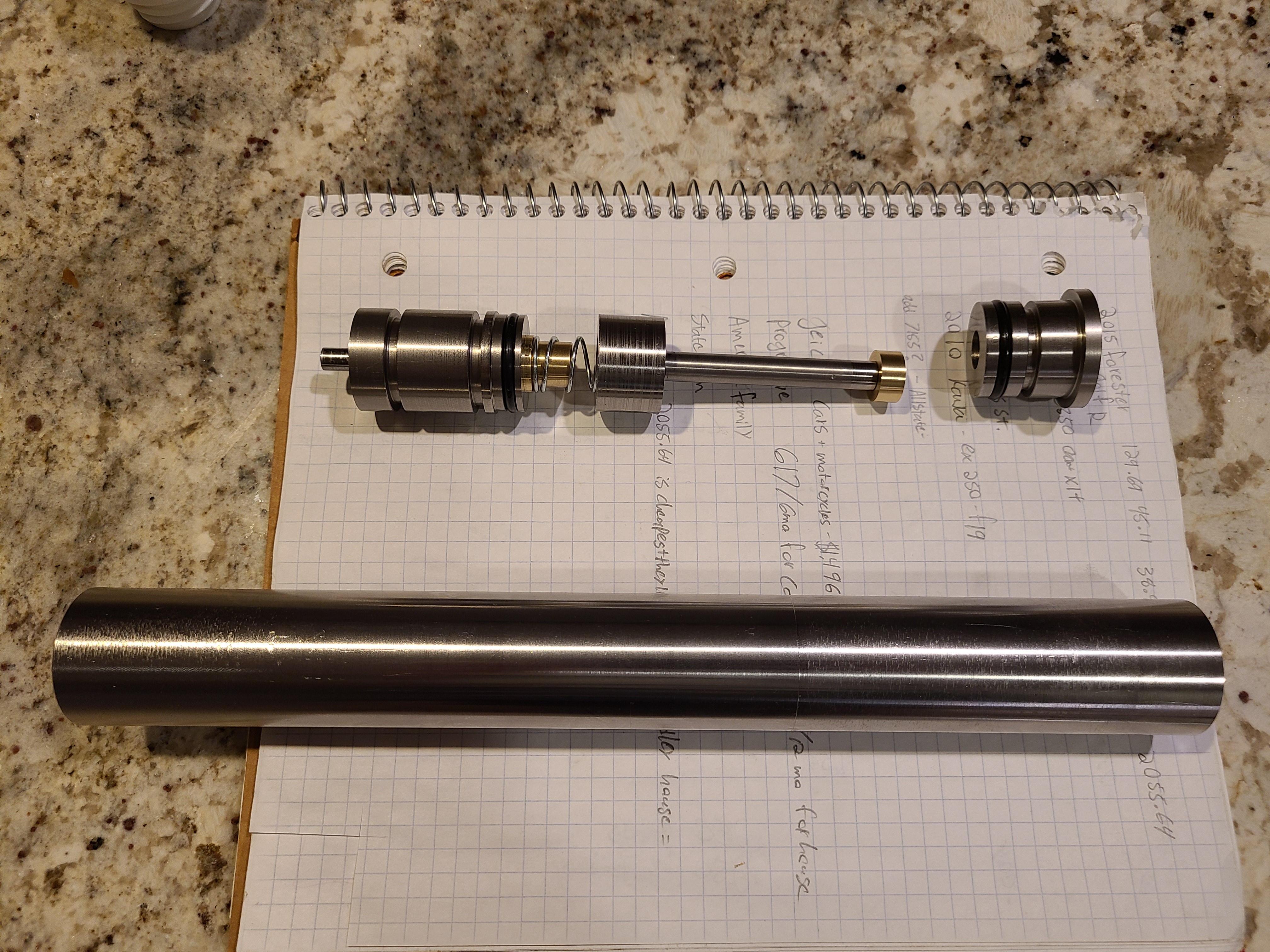 Next up is designing and building the hammer system to actually fire the gun. I have some 1000psi videos of tests done, but no real shots yet, as the gun is obviously not nearly complete. My plan is to affix another stainless tube under the existing one, and run a double hammer system. The secondary hammer will be longer, and in the lower cylinder, further away from the rear of the gun so shoulder-mount is a more natural position. The main hammer will link to the secondary hammer (the one in the primary cylinder) via a pin with a slot machined in one of the hammers to allow a bit of 'free movement' prior to engagement. This likely sounds overly complex, or doesn't make sense at all, but I want a reliable enclosed system here.
